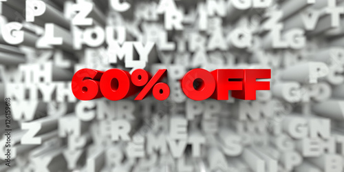 60% OFF - Red text on typography background - 3D rendered royalty free stock image. This image can be used for an online website banner ad or a print postcard.