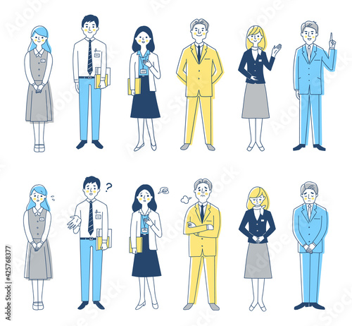 ビジネスパーソン 男女6人全身 2表情 セット