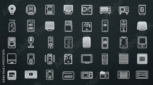 73..Editable smart home device icons in tech-style line vector