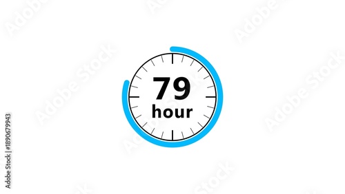 79 hours timer clock illustration. Counting timer clock on white background.