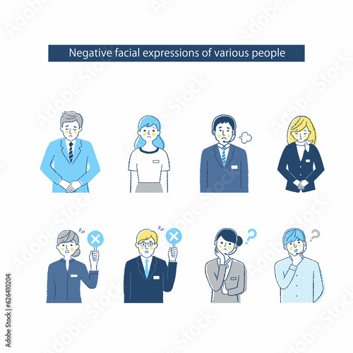 8人の男女の表情 ネガティブ