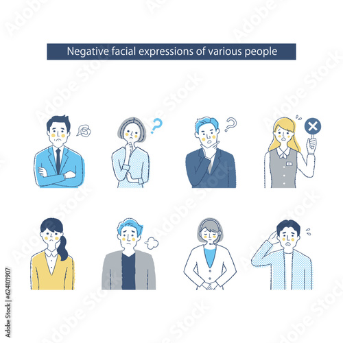 8人の男女の表情 ネガティブ
