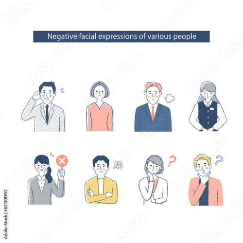 8人の男女の表情 ネガティブ