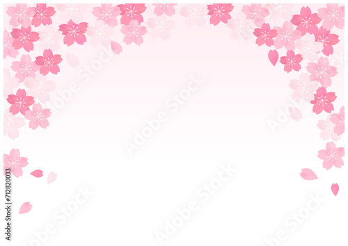 桜の花の舞う春の美しい桜フレーム背景8グラデーション