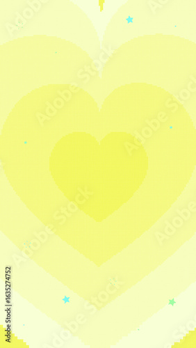 縦長8bit風黄色いハートとキラキラ星のポップ背景
