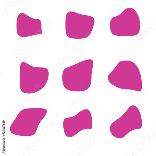 9 Modern liquid irregular blob shape abstract elements graphic flat style design fluid vector illustration set.