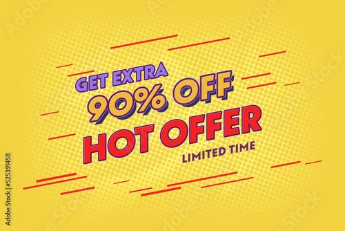 90 ninety Percent off super sale shopping halftone banner. flash sale limited sale