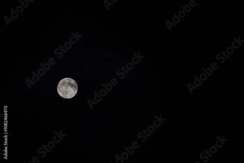 9月の十五夜の夜空に見える綺麗な満月。2024年中秋の名月。