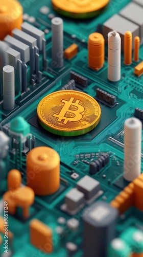 A 3D animation of gold and cryptocurrency mining processes occurring simultaneously in one operation, 3D animation, gold and crypto, mining processes