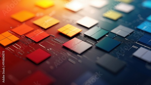 A 3D color gradient spread across a digital canvas, featuring a diverse array of colors transitioning seamlessly from one to another, with each color represented in distinct geometric shapes and