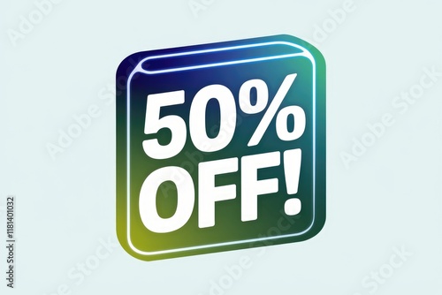 A 3D neon sign with a 50% off sale announcement.
