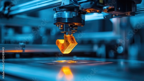 A 3D printer creating a futuristic, complex mechanical part