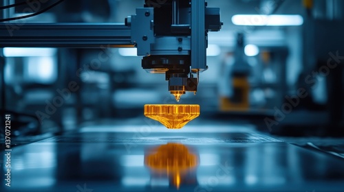 a 3D printer robot creating a complex component layer by layer close up, focus on innovation vibrant, multilayer with a techlab setting