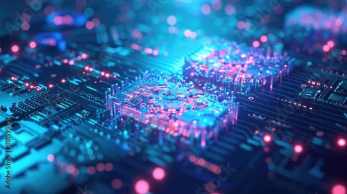 A 3D visualization of cloud networking infrastructure, represented as a giant machine with gears turning in sync across a digital landscape