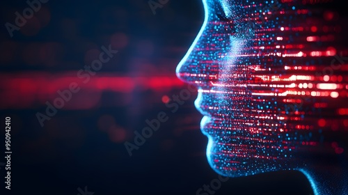 A biometric scan with AI-enhanced soundwaves in double exposure, depicting advanced security features.--style raw