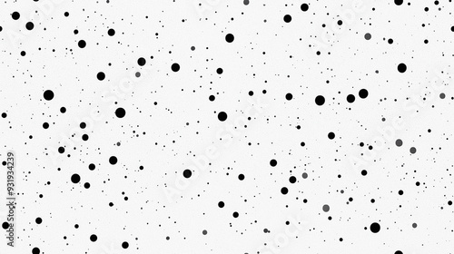 A black and white seamless pattern with scattered dots of varying sizes on a white background. The design is modern, simple, and versatile.