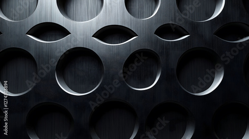A black colored metal wall with a circular pattern