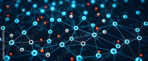 A blockchain-inspired design where binary code connects various digital nodes, symbolizing a secure network.