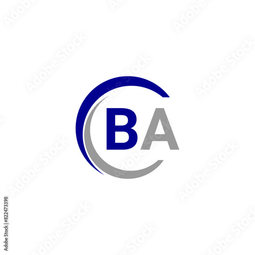 a blue and white logo with the B and A letter.