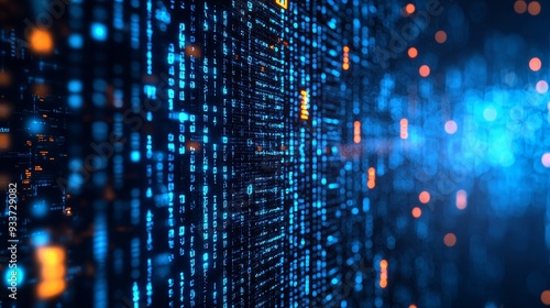 A blue data matrix simulation with futuristic HUD screen and a black abstract background