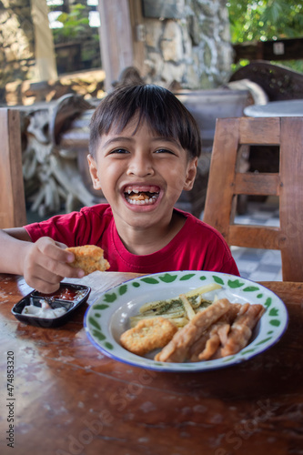 a boy is having breakfast snacks