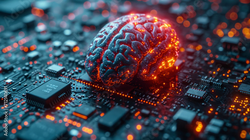 A brain living on electronics, CPU, high technology, Artificial intelligence,,generative ai