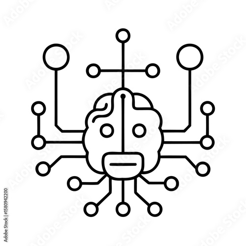 A brain-shaped circuit board with connected circles on a technology artificial