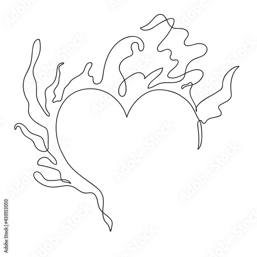 A burning heart. Vector line drawing, print design. Love.