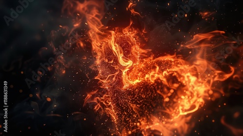 A burning heart-shaped form
