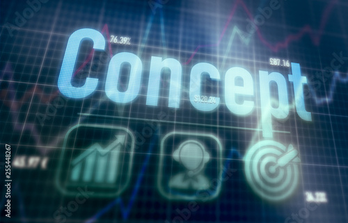 A Business Concept on a blue dot matrix computer display.
