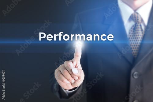 A Businessman holding a white sign with the message Performance. Can bring to the medium of your ad.