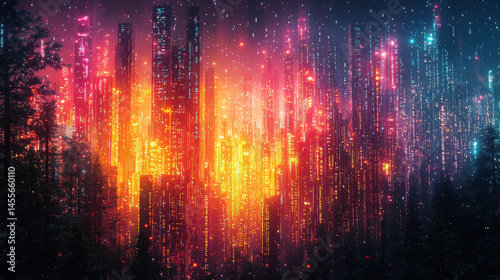 A canvas ablaze with vibrant hues, where binary code danced and algorithms hummed like a symphony of progress, symbolizing the boundless frontiers of IT innovation and the limitless horizons