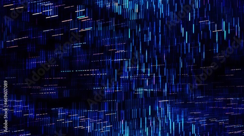 a captivating pattern with abstract data streams, binary code, glitch effects, dark blue neon tones. future business website wallpaper. generative AI