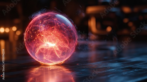 A captivating pink plasma ball emits a soft, ethereal glow