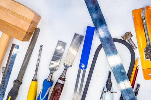 A carpenter. Chisel. Joiner. Carpenter tool. Construction concept.