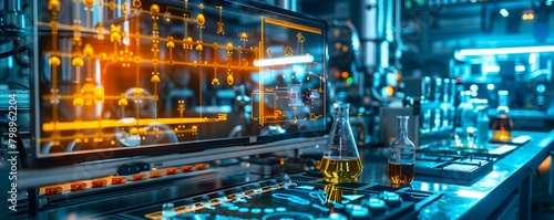 A chemical synthesis process being monitored and controlled using advanced automation systems.