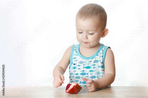 A child eating a pomegranate