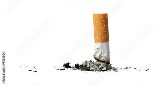 A cigarette with ash stubbed on transparent background