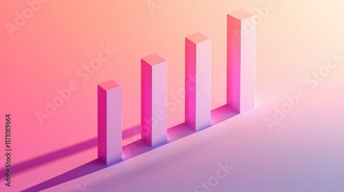 A clean and minimalist D bar chart with tall, evenly spaced bars, cast shadows on a subtle gradient background, emphasizing clarity and precision in financial data.