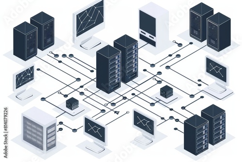 a client computer between two server computer, a schematic diagram showing a distributed system