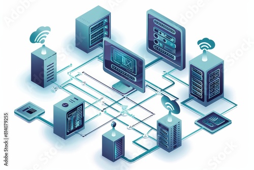 a client computer between two server computer, a schematic diagram showing a distributed system