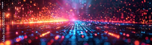 A close up of a colorful light filled room with lots of lights, futuristic abstract background , banner, copy space