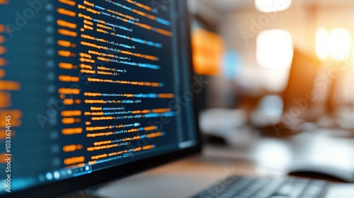 A close-up of a computer monitor showcasing brightly colored source code, symbolizing technology, programming skills, and modern software development.