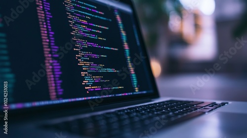 A close-up of a machine learning algorithm running on a laptop, with real-time predictions and data visualizations displayed next to lines of code.