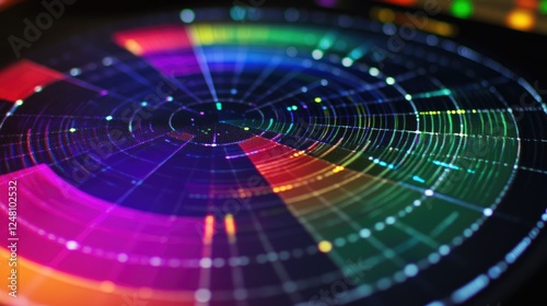 A close-up of a radar chart on a digital screen, highlighting multiple variables and comparisons with grid lines that enhance data analysis and interpretability in business intelligence.