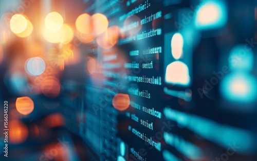A close-up of digital data and profiles displayed on a screen, with blurred colorful lights in the background creating a tech-focused atmosphere.