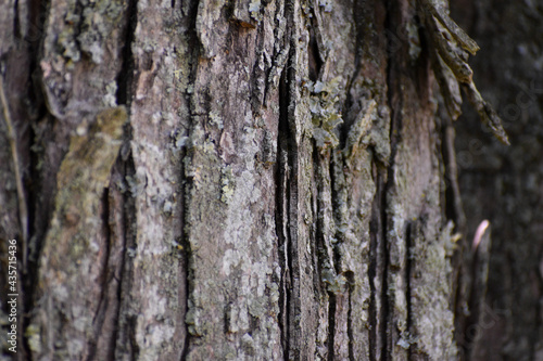 A close-up of tree bark with lichen.