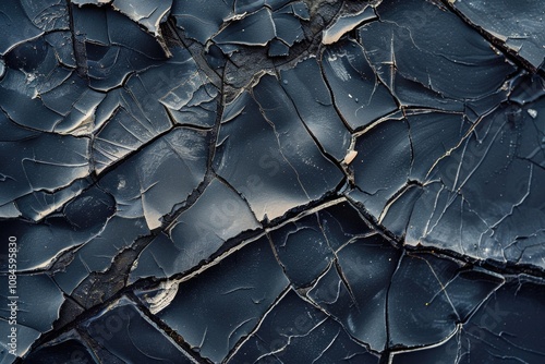 A close-up shot of a cracked blue paint surface, great for use in design projects or as a texture reference