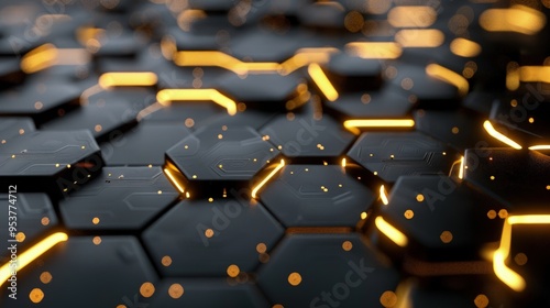 A close-up view of a hexagonal pattern with glowing edges, creating a futuristic and dynamic visual effect.
