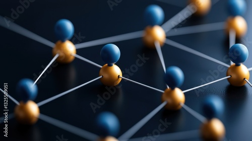 A close-up view of a molecular structure with interconnected blue and orange spheres, representing atoms linked by lines, highlighting scientific concepts.